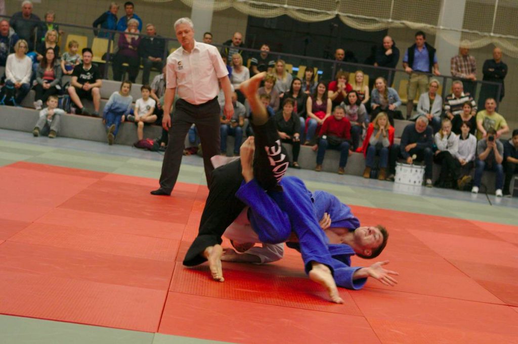 …und wie in Durchgang 1 – die ersten 3 Kämpfe gingen allesamt an den VfL! Paul Mitzlaff ließ erneut nichts anbrennen, gewann klar vorzeitig. -81 sowie -90 kg boten Tom Patzenhauer und Robert Conrad dem Publikum spannende Kämpfe und mussten alles in die Waagschale werfen, um die Punkte 7 und 8 für den vorentscheidenden Riesaer Gesamtsieg zu holen. Wie enorm wichtig dies war, zeigten die Folgekämpfe. Mit einem ausgeglichenen Fight -73 kg, einem fast schon gewonnenen Kampf -66 kg sowie einem aus Riesaer Sicht zu schnellem Ende -60 kg gingen diese drei Duelle alle an die Gastmannschaft. Die letzte Begegnung des Tages (-100) konnte danach Danny Hanke für sich und Riesa entscheiden. Nach den zuvor drei in die Gegenrichtung gekippten Duellen ist dies nie leicht, doch Danny behielt die Ruhe und bewies im Bodenkampf seine Extraklasse – gewann vorzeitig und stellte den letztlich hochverdienten 9:5 Gesamtsieg für die Elbestädter um Coach Th. Münch her.